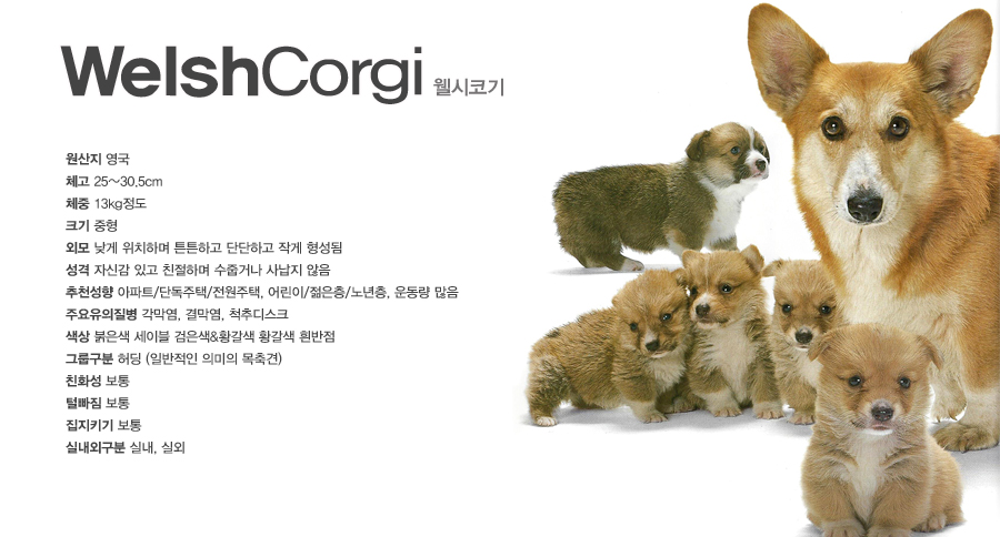 웰시코기분양 Welsh Corgi 유래 보기 해당 정보는 펫갤러리아에서 제공하는 반려견 정보로 무단 도용시 저작권법 등에 따라 법적 책임을 질 수 있습니다.